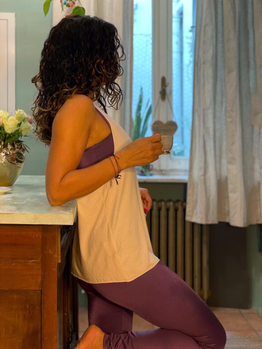 STYLE TIPS: Il modello Dance con scollo a V e collarino chocker e’ stato progettato per essere indossato con lo scollo sul davanti. Consigliamo di abbinare un bra con uno scollo dritto per avere maggiore comoditaโ durante la pratica.