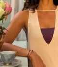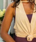 Dettagli: Scollo Deep V sul davanti con dettaglio collarino choker. Taglio vivo per renderlo piรน leggero senza cuciture.