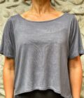 Dettagli: Modello corto crop, vestibilitร ampia boxy, leggermente piรน corto sul davanti, scollo ampio per essere indossato dritto o calato sulla spalla.